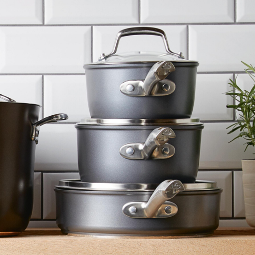 In 1986, we invented the first hard-anodized nonstick cookware. Our Anolon line represents the pinnacle of cookware development. With ultra durable, sapphire-reinforced nonstick both inside and out for easy cleaning, gently molded handles for comfort, and thick stainless steel bases for easy searing, Anolon cooks like cast iron, but cleans like nonstick.
